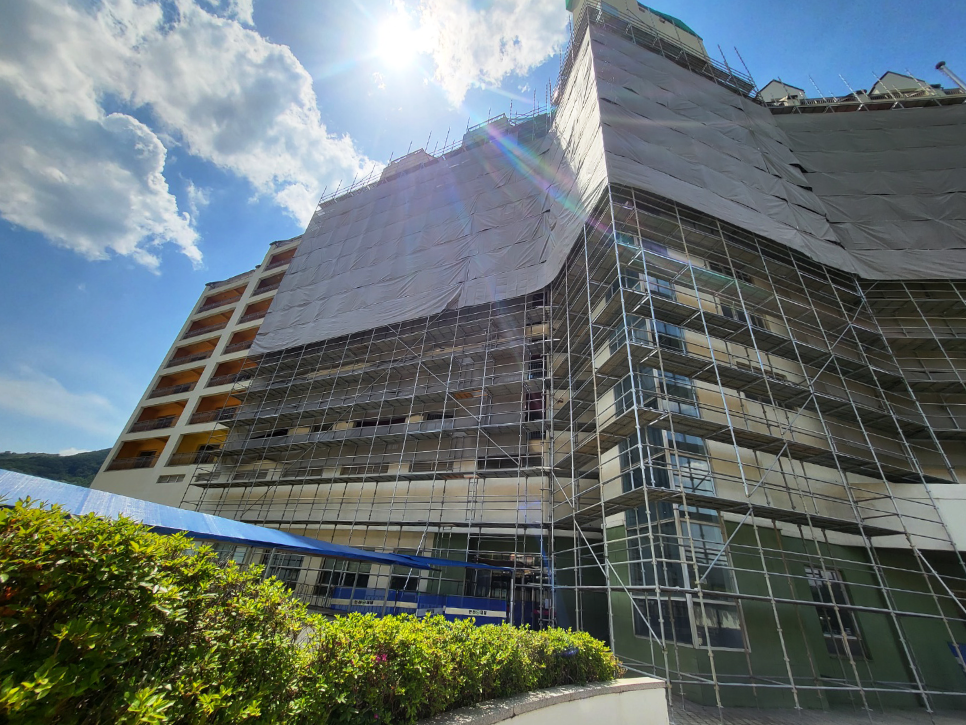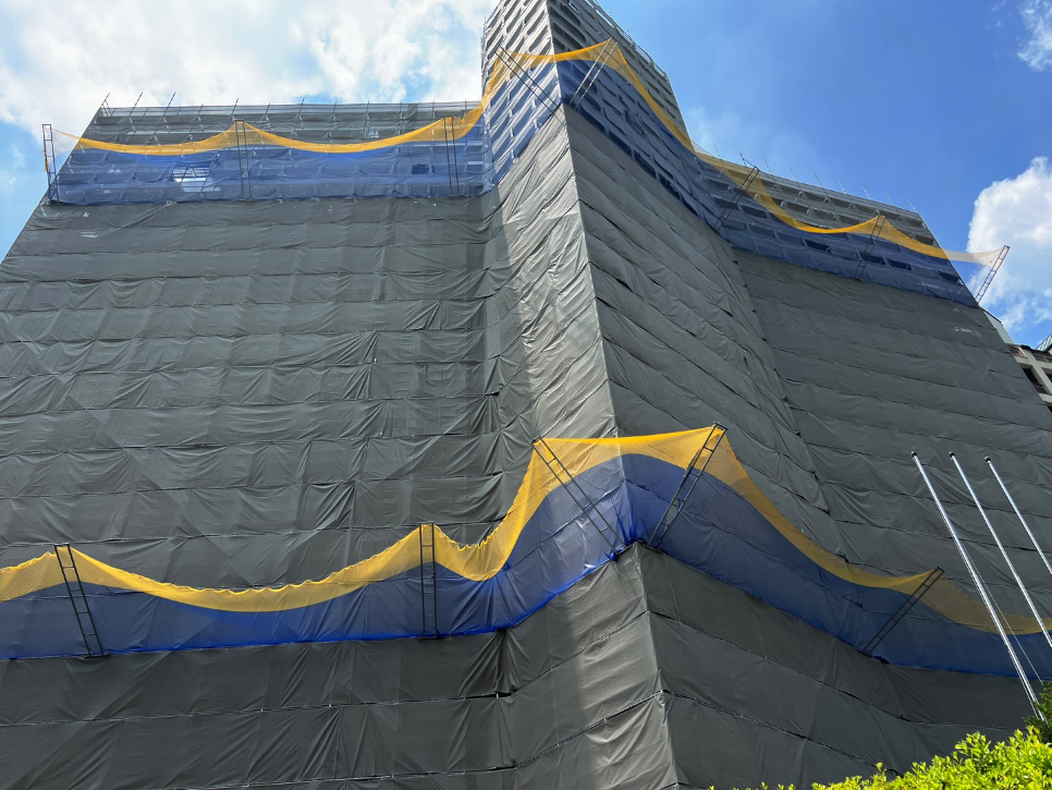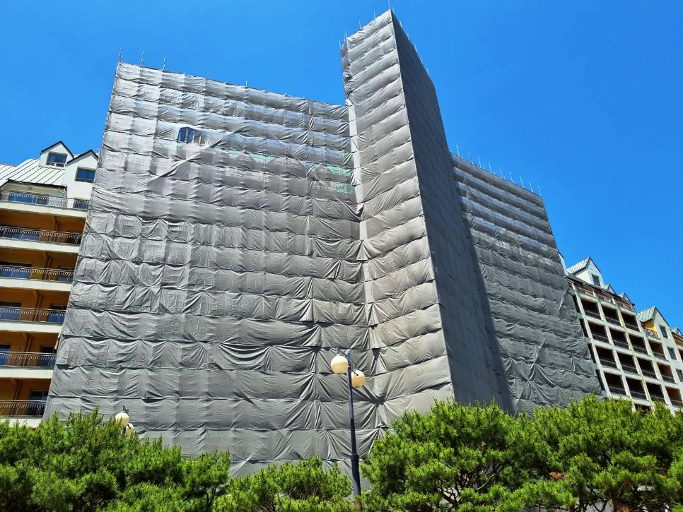 리모델링 현장 같은 경우 현장에서 발생하는 먼지나 폐기물 등이 많이 발생하므로 수직보호망 설치는 필수라고 보시면 됩니다.