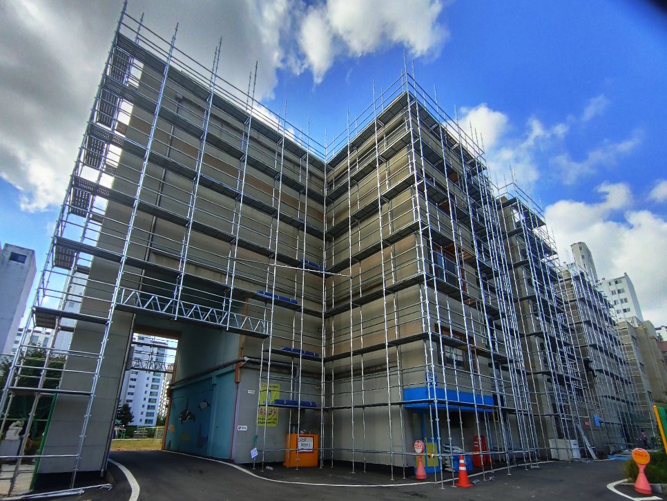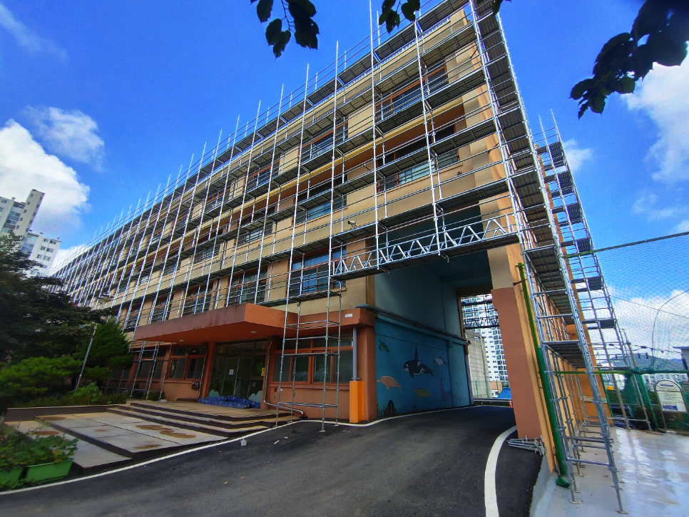 안녕하세요! 오늘은 안양시에 위치한 호계초등학교 시스템비계 설치 현장을 소개해 드리려고 합니다